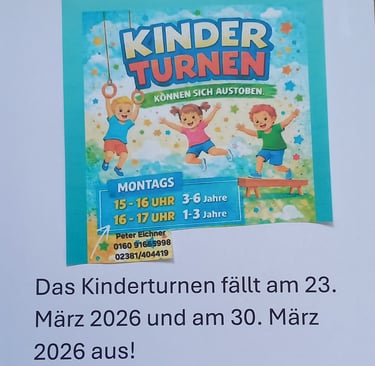 Das Kinderturnen fällt am 23. und 30. März 2026 aus!